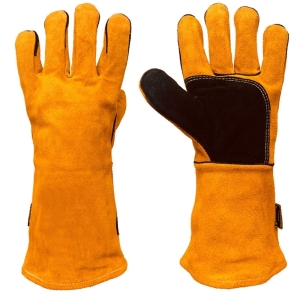 Material: Made from high-quality cowhide leather for durability and heat resistance Lining: Soft cotton lining for added comfort during extended wear Color Options: Customize Color Extended Cuff: Extended cuff design with adjustable wrist closure for a secure fit and added protection for wrists